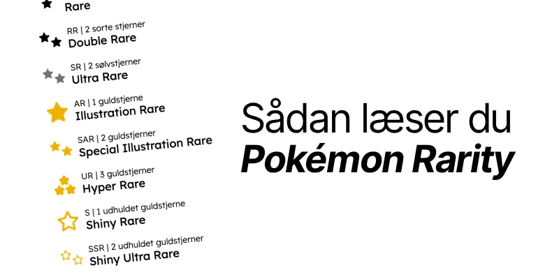 Lær at læse Pokémon-kort rigtigt. Vi gennemgår kortnavne, samlernumre, promo-koder, stjerner og forskellen på almindelige rares og de mere særlige kort.